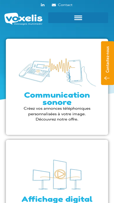 69%voxelis est spécialisé dans la communication sonore dédiée à l’accueil téléphonique des entreprises et dans l’affichage dynamique.affirmez votre identité, communiquez sur votre actualité et soignez votre image !