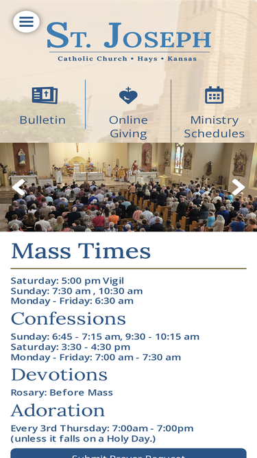 99%St. Joseph Catholic Church, Hays, KS | Features include parish news, Mass and Confessions schedule, bulletins, parish calendar, descriptions of all parish programs, sacrament information and much more!