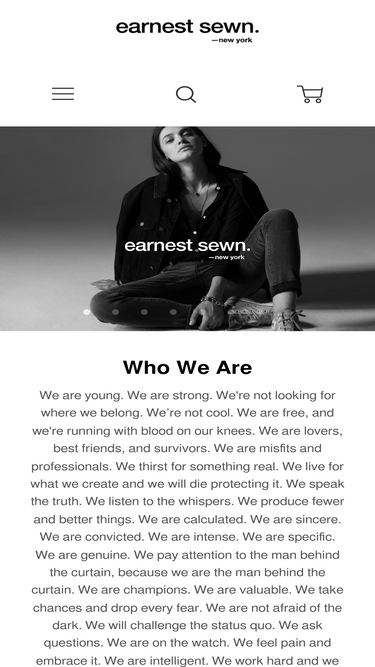 79%Online Store for Earnest Sewn, the New York City-based premium denim brand that operates on a “sewn in earnest” mentality and emphasizes quality above all. Jeans for men and women, contemporary fashion market.