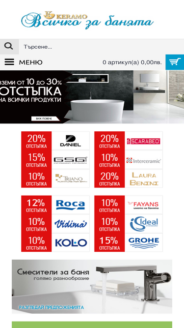 90%Плочки за баня, гранитогрес, теракот, фаянс, мебели за баня, мивки, душове, душ кабини, смесители за баня, вани, паравани, аксесоари за банята и всичко за банята....
