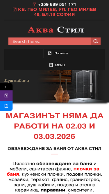 96%Баня, душ кабини, огледала за баня, санитарен фаянс, плочки, подови плочки, мозайки, теракот, гранитогрес, вани, паравани, промоции