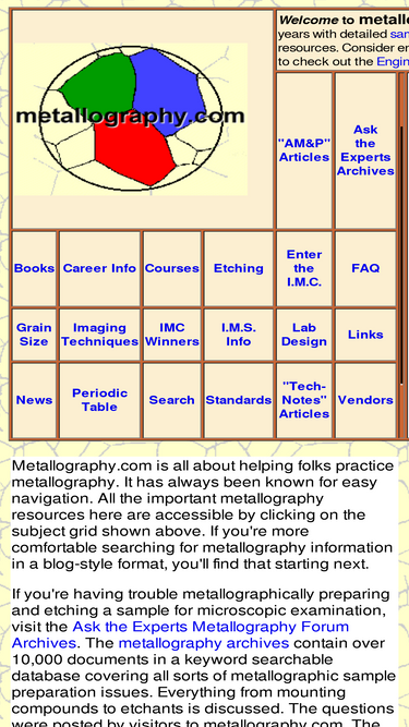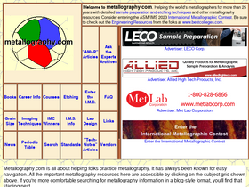 100%massive searchable archive of metallographic preparation tips, metallography faq, metallography news, ims info.