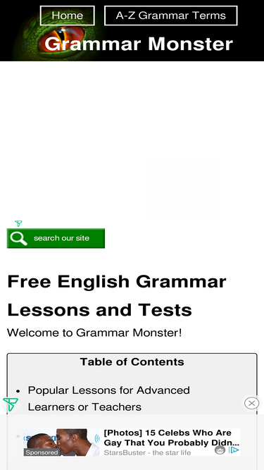 81%welcome to grammar monster. we have hundreds of free english grammar lessons and tests. there's a glossary of grammatical terms and a full list of common grammar errors. and, there's more. a lot more.