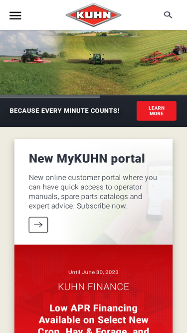 83%Discover KUHN’s commitment to sustainable agriculture. As a global leader in innovative, high-quality agricultural equipment, we actively contribute to the noble mission of feeding the world. Learn how we design, manufacture, and market solutions that meet the diverse needs of farmers worldwide while preserving the environment. Explore our 190 years of excellence, recognized products, and true partnerships with dealers and suppliers. Be “Stronger with KUHN” as we optimize agronomical and economical results for a more sustainable future.