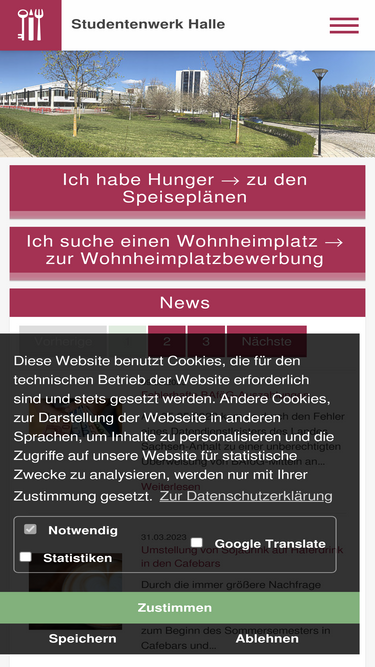 92%Beachten Sie bitte die verkürzten Öffnungszeiten am 19.12. in den gastronomischen Einrichtungen. Eine Übersicht über die Schließzeiten aller Bereiche des Studierendenwerks finden Sie hier.