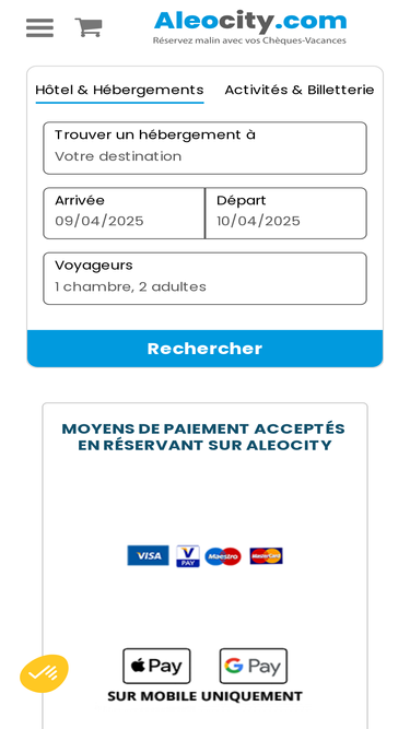 86%Plus de 280 000 hébergements à travers la France et l'Europe - Chèques-Vacances acceptés