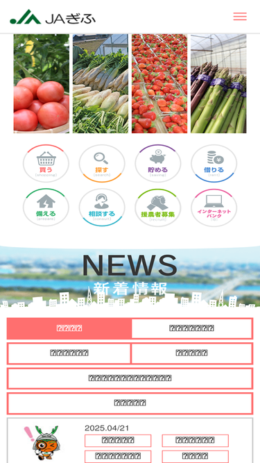 57%jaぎふの公式ホームページです。jaぎふは、営農・生活から金融・共済までの幅広い事業の展開を通じ、 質の高いサービスとニーズに応じた商品の提供を行い、 組合員とその家族のみならず全ての市民の豊かな生活の実現に貢献することを目指します。