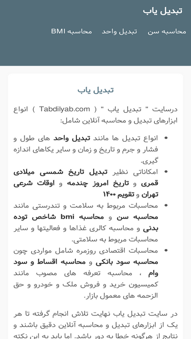 تبدیل یاب - تبدیل و محاسبه آنلاین ، انواع ابزارهای آنلاین محاسباتی و تبدیلات کاربردی tabdilyab.ir