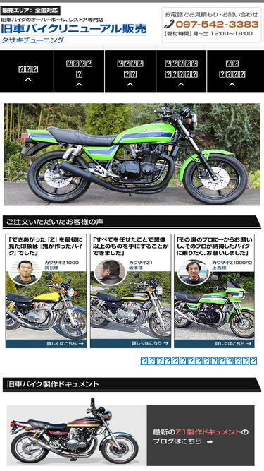 98%【全国対応】長期保証付き。カワサキz系、j系、gpz900r、スズキカタナを中心にお客さまのご希望のバイクを探し出しオーダーメイドでレストア+オーバーホール済みで販売。チューニングも可能です。