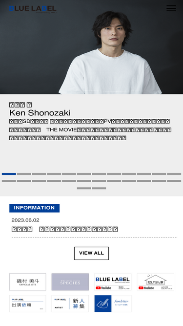 68%BLUE LABELによる三河悠冴公式プロフィールページ。