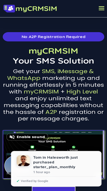 68%Get unlimited SMS, iMessage & WhatsApp for High Level. No more costly per SMS fees with myCRMSIM