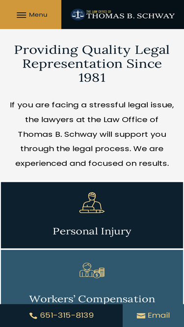 99%at the law office of thomas b. schway in oakdale, we have built a 30-year reputation for results in a broad range of important cases. call 651-315-8139.