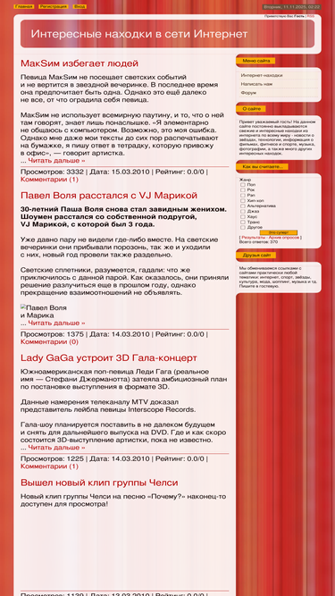 75%всё самое интересное из сети интернет, музыка, фильмы, новости, звёзды, фотографии, скандалы, сенсации, игры, мультики, знакомства.