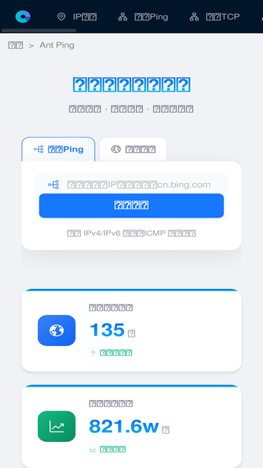 100%Ant Ping 提供一站式网络检测工具,支持 IP 查询、Ping 测试、TCP 端口检测、DNS 查询和网站测速,覆盖全球节点,帮助快速定位网络问题。
