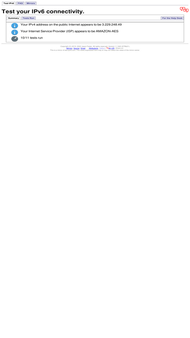 94%this will test your browser and connection for ipv6 readiness, as well as show you your current ipv4 and ipv6 address.