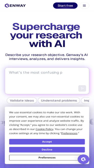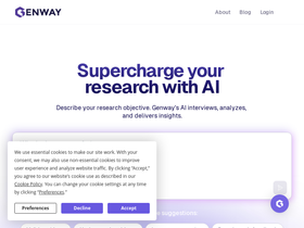 86%Genway AI is the leading AI-powered user research platform that conducts automated interviews to uncover deep customer insights. Empower product, UX, and innovation teams to make faster, data-driven decisions with synthetic research at scale.