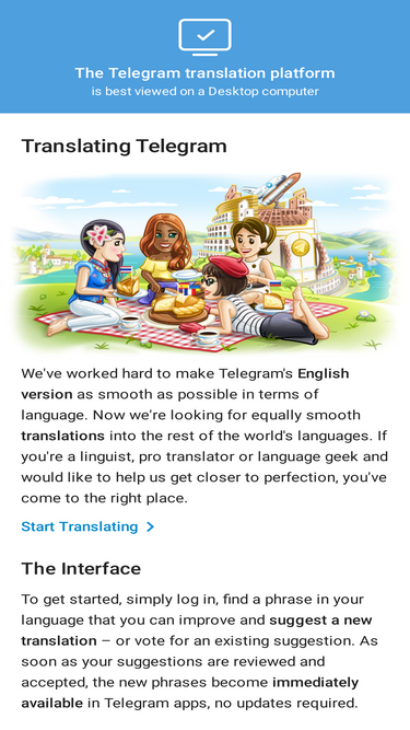 89%This is the Telegram translation interface. To get started, find a phrase in your language that you can improve and suggest a new translation – or vote for an existing suggestion.