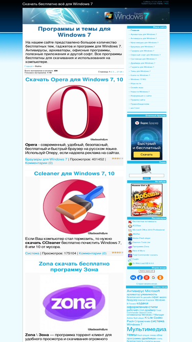на сайте можно бесплатно скачать программы на русском языке, стили, гаджеты, книги по windows 7, узнать последние новости windows 7