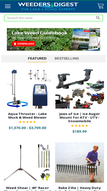 29%Shore-Tech Industries Lake Weed Harvesters and Skimmers Shoretech Industries (a division of Weeders Digest) offers a complete line of the most effective and innovative harvesting, skimming, and dredging equipment in the market today. Our harvesting products are affordable, easy to use, eco-friendly, and our sales staff is professional and informative and ready to help you find the best solution for your application. Eco-Force The Eco-Force is the only harvester on the market that provides 3 in 1 suction weed harvesting, dredging, and skimming functionality. It was specifically engineered to address the inefficiencies of traditional lake weed harvesters. Starting out at $57,999.00, it is less than half the cost of the next closest dredger in its class which only removes lake and pond bottom sediment. Learn More... Shore Transfer Conveyor: Multi-Purpose, Stackable Conveyor Shore transfer conveyors work in unison with aquatic lake weed harvesters as an unloading link between land and water or as a stand-a-lone shore conveyor to covey lake weeds from the shoreline to a dumpster or trailer. Harvested lake weeds are off-loaded from the aquatic lake weed harvester onto a shore transfer conveyor that then elevates the lake weeds up into a waiting dump truck or trailer. Our shore conveyor is light weight and can easily fit into the back for a pick-up truck or trailer. Learn More WaterShark: Your Shoreline's New Best Friend Unveiling the future of lake weed management with precision, speed, and sustainability. Meet WaterShark – a ground-breaking, battery-powered lake and pond weed cutting machine. With its lightweight design, real-time camera feed, superior cutting capabilities, and auto-leveling feature, the WaterShark redefines waterfront cleanup. It's more than a tool, it's your partner in maintaining the beauty and integrity of your waterfront property. Learn More WaterBug: Enter the Remote Controlled Harvester The Waterbug 3.0 is a remote controlled aquati