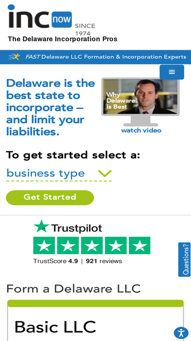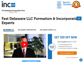 75%Form a Delaware LLC or Incorporate in Delaware in 5 minutes! Just $9 plus Delaware registered agent service. Video shows you why the Delaware LLC is the Best.