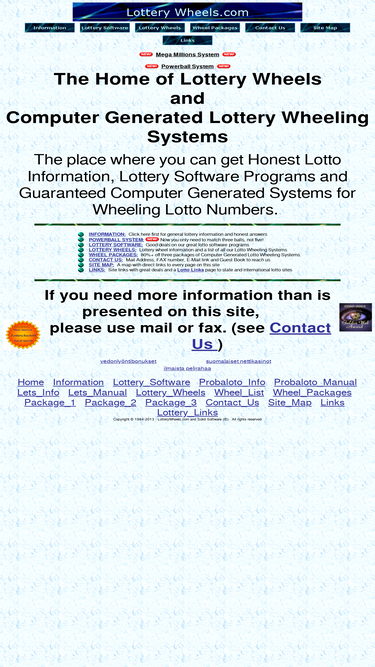 lottery software programs, lottery information and computer generated systems for wheeling lotto numbers.