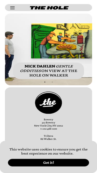 88%The Hole is a contemporary art gallery run by Kathy Grayson. Opened in July of 2010, The Hole presents monthly solo and group exhibitions with a focus on emerging art and thematic group shows.