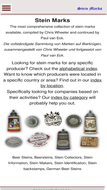 an extensive and detailed overview of beer stein producers and their markings, compiled by master steinologist chris wheeler.