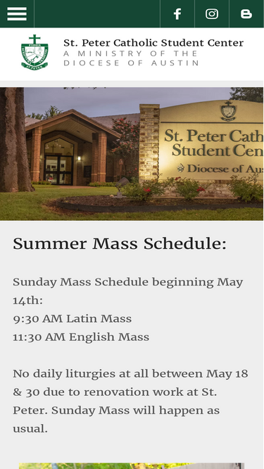 86%St. Peter Catholic Student Center serves the Catholic community of Baylor University, McLennan Community College (MCC), and Texas State Technical College (TSTC) in Waco, Texas. We welcome students, faculty, staff, and friends to join us for enriching worship, formation, fellowship, and outreach opportunities.