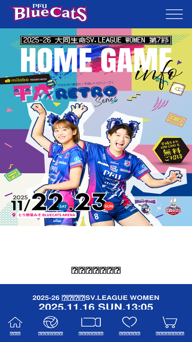 pfuブルーキャッツ石川かほく(ピーエフユーブルーキャッツ)のオフィシャルwebサイトです。 pfuブルーキャッツ石川かほくは、石川県かほく市を本拠地とする女子バレーボールチームです。 最新の試合情報、選手紹介、チームニュース、イベント情報、チケット販売などの情報をお届けします。