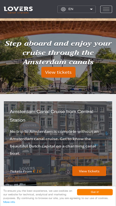 87%Looking for the best Amsterdam canal cruise? LOVERS Canal Cruises is the way to go! Sailing the canals since 1956. Enjoy various cruises, from classic boat tours to romantic dinners. Book your cruise online!