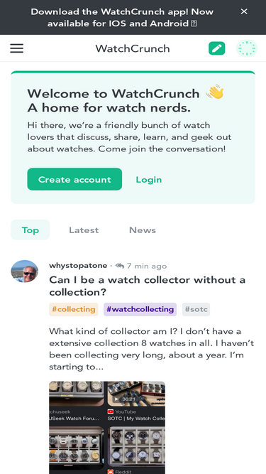 WatchCrunch is a social platform created by watch enthusiasts for watch enthusiasts to discuss, share, learn, and geek out about watches. Download the app for iOS and Android.