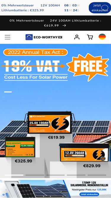 100%Black Friday bei Eco Worthy:Erhalten Sie die niedrigsten Preise,direkt ab Werk jetzt bares Geld sparen ! im ECO-WORTHY Onlineshop zum günstigen Preis kaufen hochwertige Solarmodule, LiFePO4-batterien, Solaranlage (Off-Grid), Hybrid Wind Solaranlage für preisbewusste Kunden .