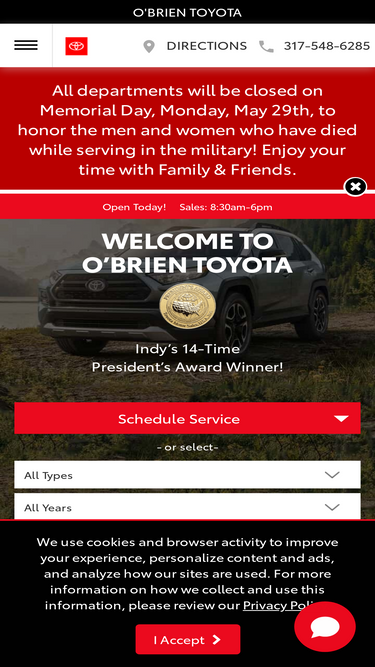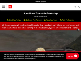 o'brien toyota offers a vast selection of the latest toyota models and quality used cars, trucks and suvs. our service department can handle all repairs and maintenance!