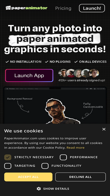 100%Apply paper effect to any photo in seconds. Customize paper animation and export with green sceen background.