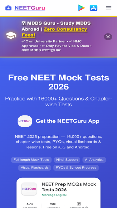 92%🎯 Latest NEET 2026 preparation tips, study strategies, subject guides, and expert advice. Read our comprehensive blog for NEET success with 4000+ practice questions!
