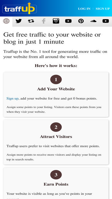 Use Traffup to get free traffic to your website, free twitter followers and retweets. Join now!