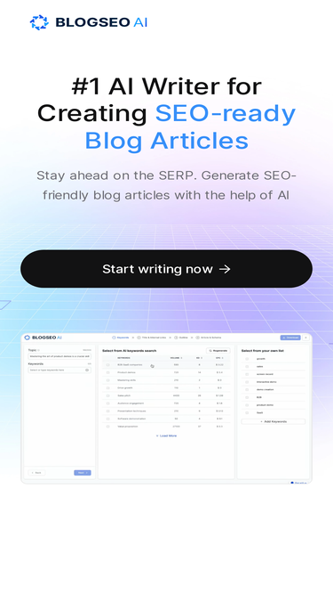 99%Meet BlogSEO AI, the best Shopify AI App & Shopify AI Writer that helps you create SEO-ready and human-friendly blog posts based on your Shopify products.