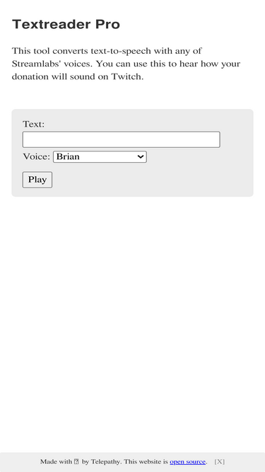 streamelements tts emulator. you can use this site to convert text-to-speech with any of streamelements voices.
