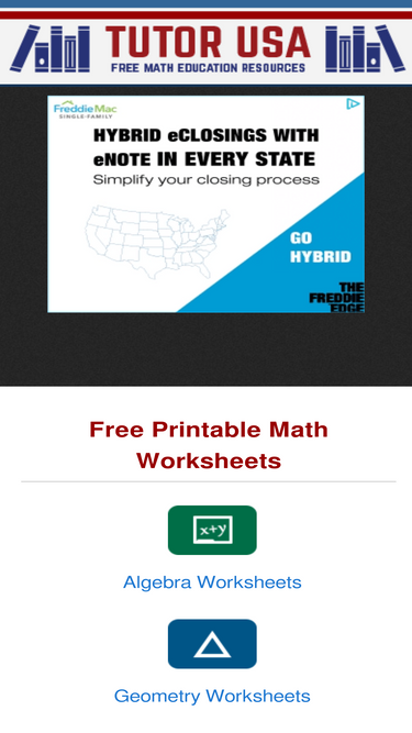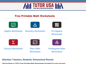 66%Tutor-USA offers a huge selection of free math worksheets for print or download. Our worksheets are perfect for homework and classwork. Subjects include Algebra, Geometry, Calculus, Pre-Algebra, Basic Math, Trigonometry, and more.