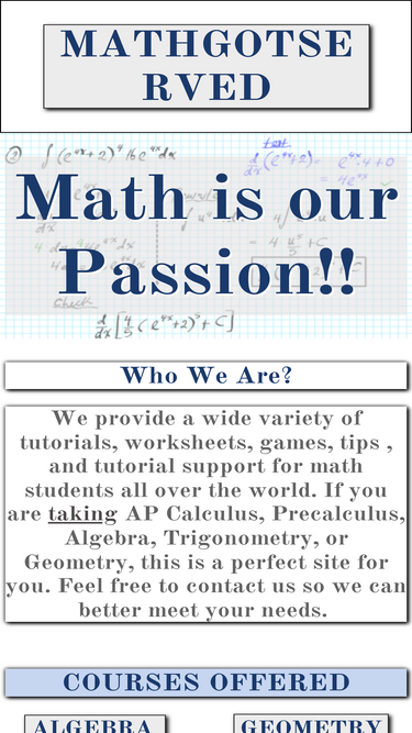 64%these videos make math fun and easy to learn. services include: act/sat test prep cram sessions, homework help, math notes & video flash cards.