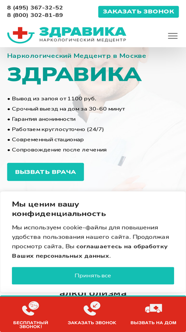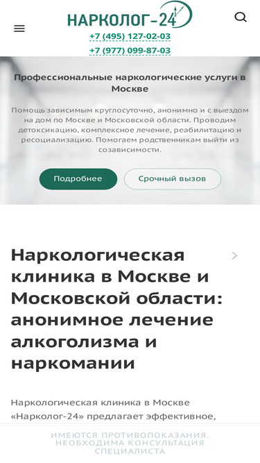 90%Оказываем срочную наркологическую помощь, услуги лечения алкоголизма, наркомании и других зависимостей. Круглосуточная наркология на дому и в стационаре Москвы.