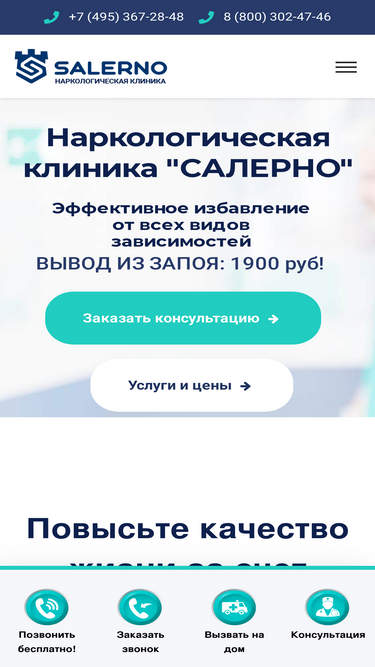платная наркологическая клиника оказывает анонимную помощь в лечении алкоголизма, наркомании, токсикомании, игромании и табакокурения на дому и в условиях стационара. круглосуточно.