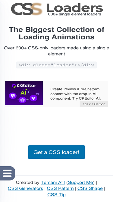 100%CSS-only loading animations made by Temani Afif using a single element.