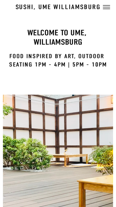 100%Located in Williamsburg, Ume serves sushi in a unique haute couture omakase set in a minimalistic setting with a back garden.