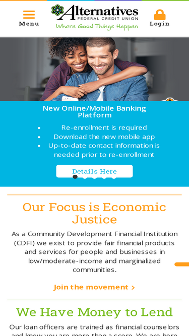88%At Alternatives FCU, our mission is to build wealth and create economic opportunity for underserved people and communities.