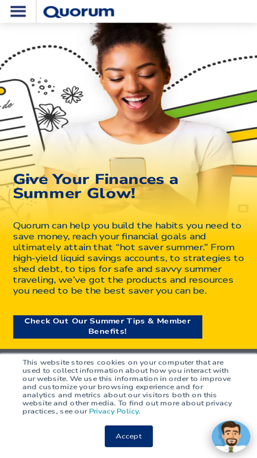 Quorum is an online credit union that offers banking products like high-yield savings accounts, free checking, home loans, and more!