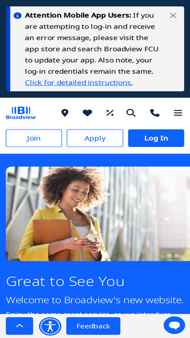 97%Welcome to Broadview Federal Credit Union. Here, the big picture is all about you. Broadview is devoted to your financial well-being, the strength of our communities, and employees who deliver on the values we share.