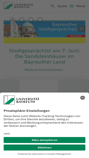 100%Willkommen auf der Website der Uni Bayreuth. Unsere lebenswerte Campus-Uni bietet innovative, interdisziplinäre Studiengänge und gute Karrieremöglichkeiten.