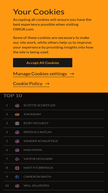 85%ELIGIBLE TOURS. OFFICIAL WORLD GOLF RANKING FOUNDERS. STAY IN TOUCH. © 2022 - OFFICIAL WORLD GOLF RANKING.