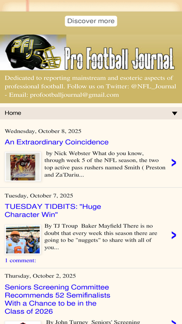 68%Dedicated to reporting mainstream and esoteric aspects of professional football. Follow us on Twitter: @NFL_Journal - Email: profootballjournal@gmail.com
